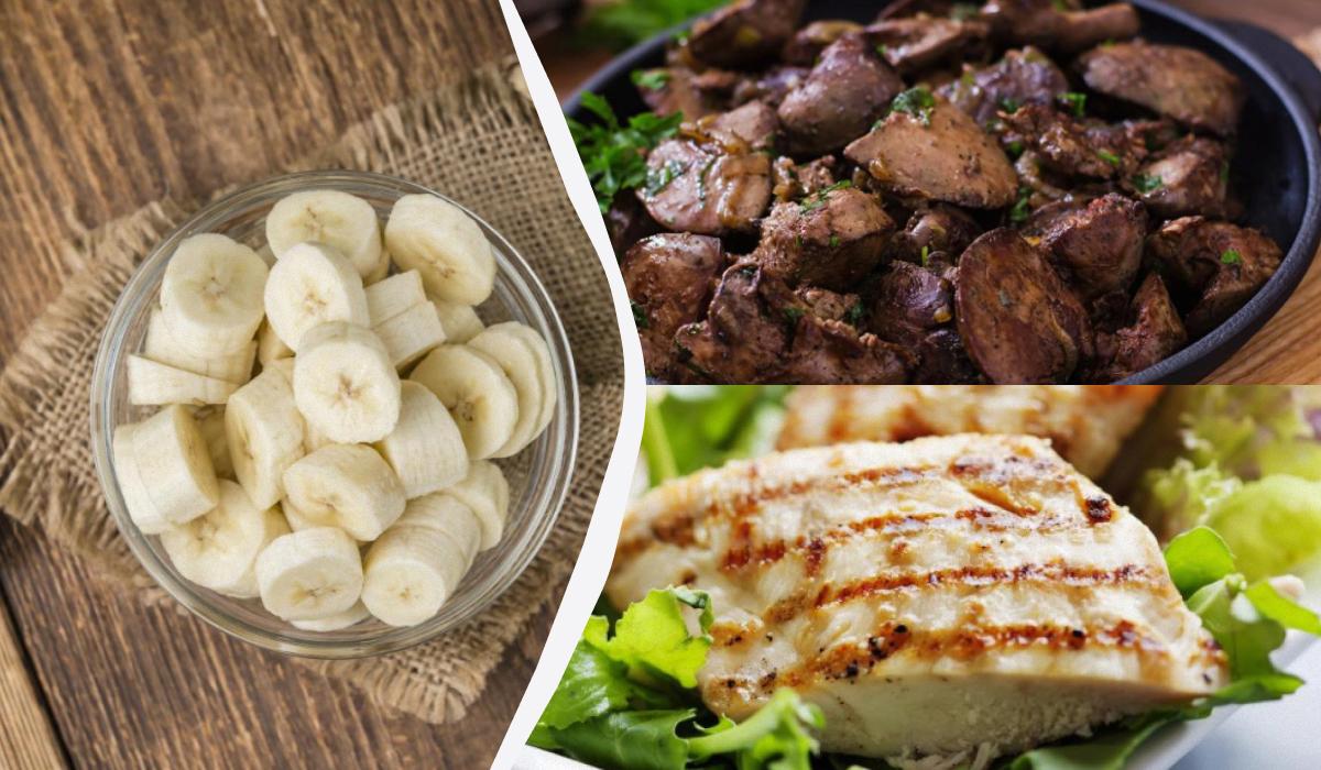 Porcijoje jautienos kepenų arba vištienos krūtinėlės yra daugiau vitamino B6 nei viename banane / My koliažas, nuotrauka depositphotos.com