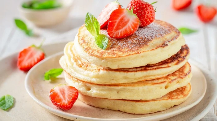 Išrūgų blynai be kefyro, pieno ir kiaušinių pasirodo nebrangūs ir purūs.