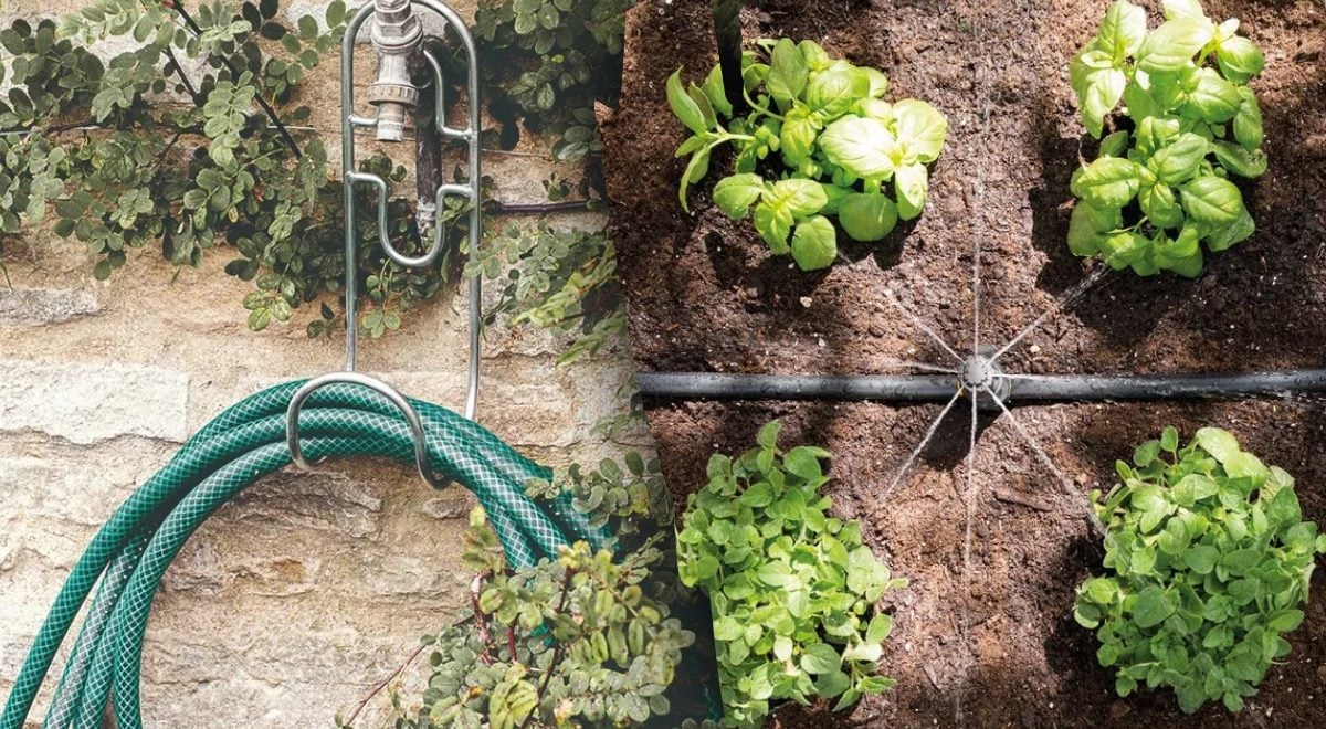 Automatinis daržo laistymas „pasidaryk pats“ / „Collage My“, nuotrauka: „Future PLC“, „Hozelock“
