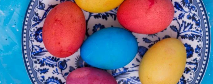 Nuotrauka: iš atvirų šaltinių Jei kiaušinių nenuplausite prieš dažydami, negausite tokio rezultato kaip paveikslėlyje. Dažai gali prarasti tolygią spalvą